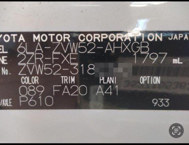 | Chassis # | Zvw52-31××××× | grade/Class | DAMGE |