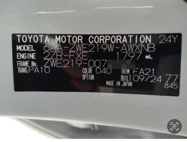 | Chassis # | ZWE219-00××××× | grade/Class | S TOURING |